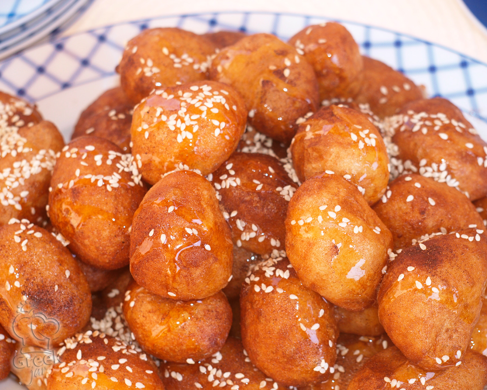 Make sure the temperature of the oil stays about the same (high, not too high) so that loukoumades have time to cook on the inside as well.