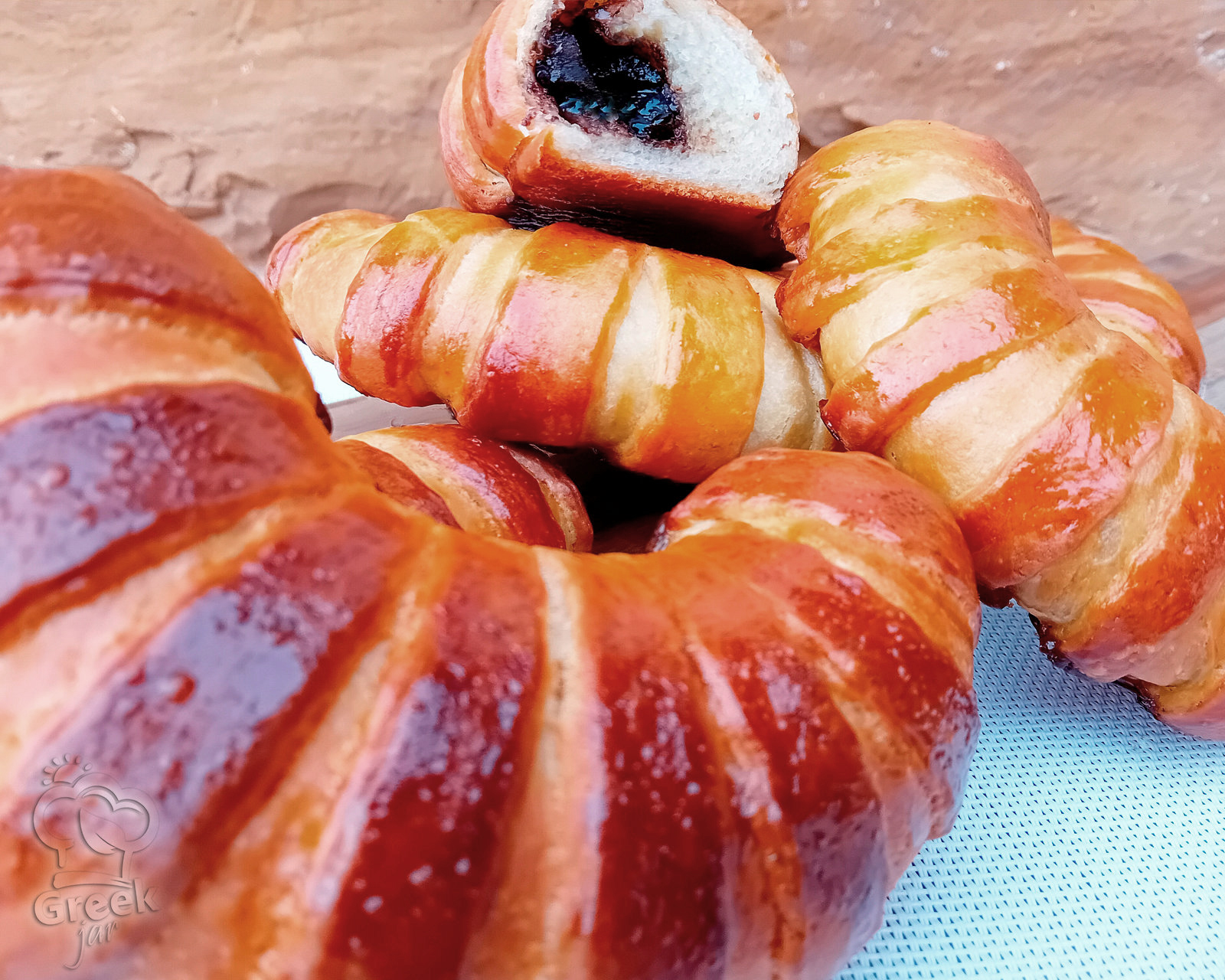 - Brush with egg yolk and milk and bake in a preheated oven (set to fan) at 355 °F - 180 °C for about 20 - 25 min.