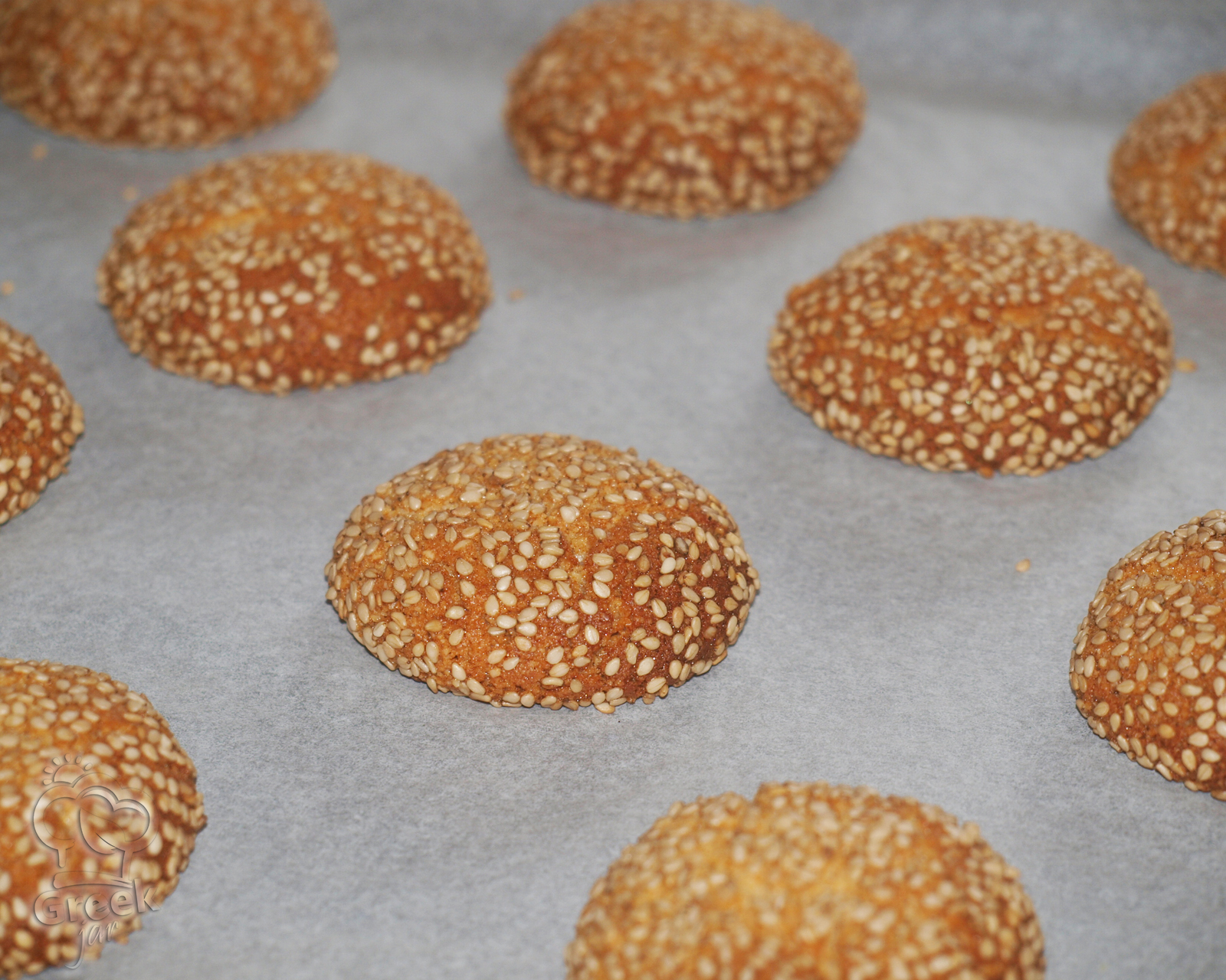 3. Form 25 g balls, roll them in the sesame seeds and transfer them to a baking tray lined with parchment paper.