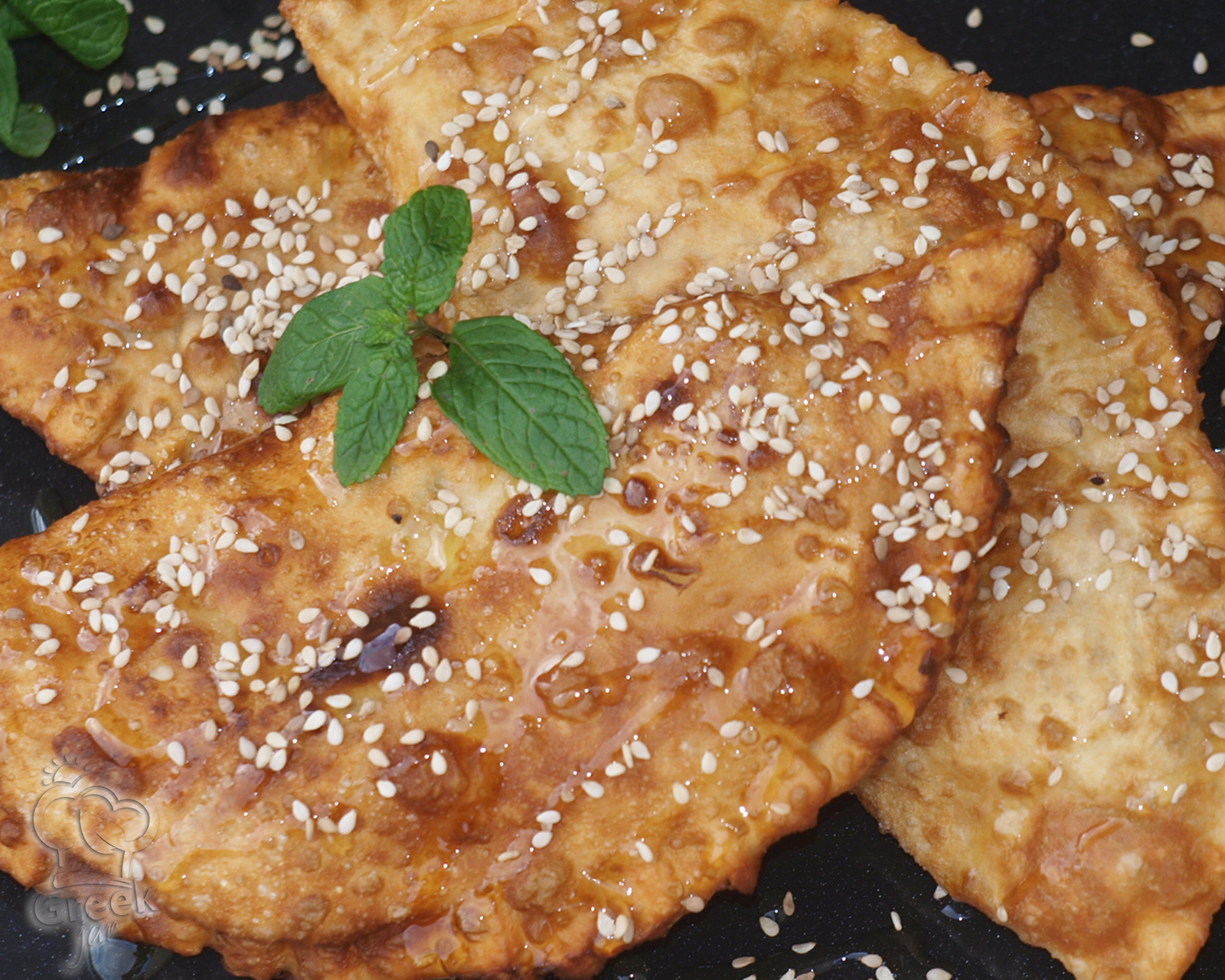 - Place them on paper towel. Before serving drizzle with honey and sprinkle with sesame seeds.